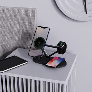 Ładowarka bezprzewodowa 3w1 ze stojakiem do urządzeń Apple - czarna