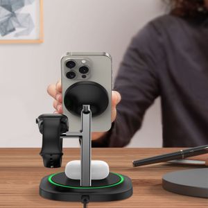 Ładowarka indukcyjna 3w1 do smartfona smartwatcha słuchawek Magnetic MagSafe - czarna